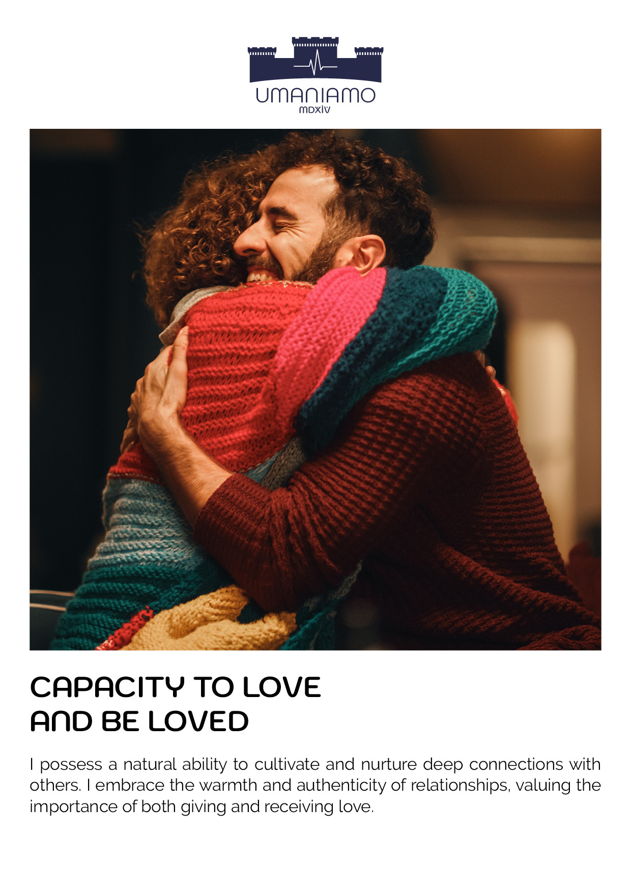 The Capacity to Love and Be Loved is the ability to see the goodness in yourself and another person clearly enough that a relationship forms around that recognition - and that recognition must be mutual. To love another person deeply requires seeing them clearly through their strengths, their struggles, their dignity, and their potential. To be loved requires something equally difficult. It requires allowing ourselves to be seen. This is why we will begin the Crossing here through this REDISCOVER UⓇ strength.