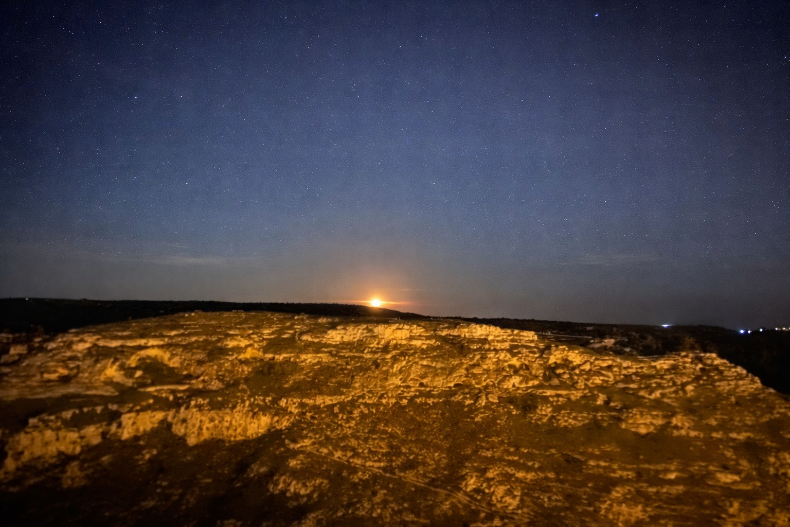 Only minutes earlier the ravine had been grey and quiet. Then the horizon began to glow. Before the shape of the moon even appeared, the sky looked like a fire rising from the earth. When the orb finally lifted above the ridge, it looked exactly like the sun and the entire landscape began to glow.